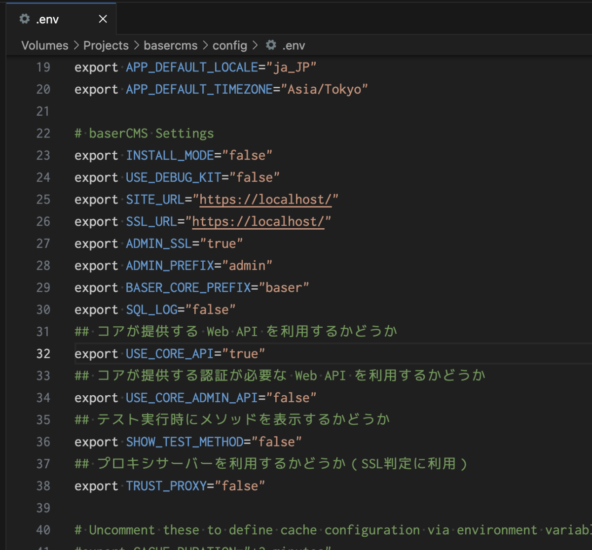 APIはインストール直後は有効になっていないので「Web API ガイド」にしたがって config/.env の内容を書き換えます。