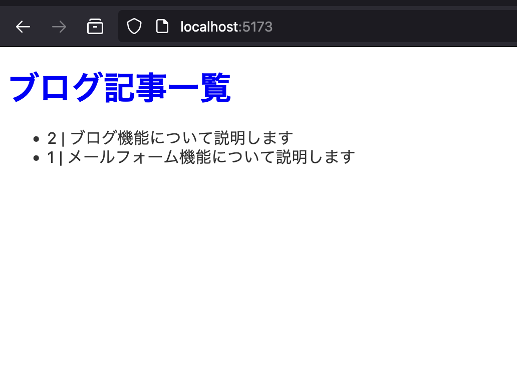 先ほどと同じく、ファイルを作成したらブラウザで http://localhost:5173/ を確認してください。