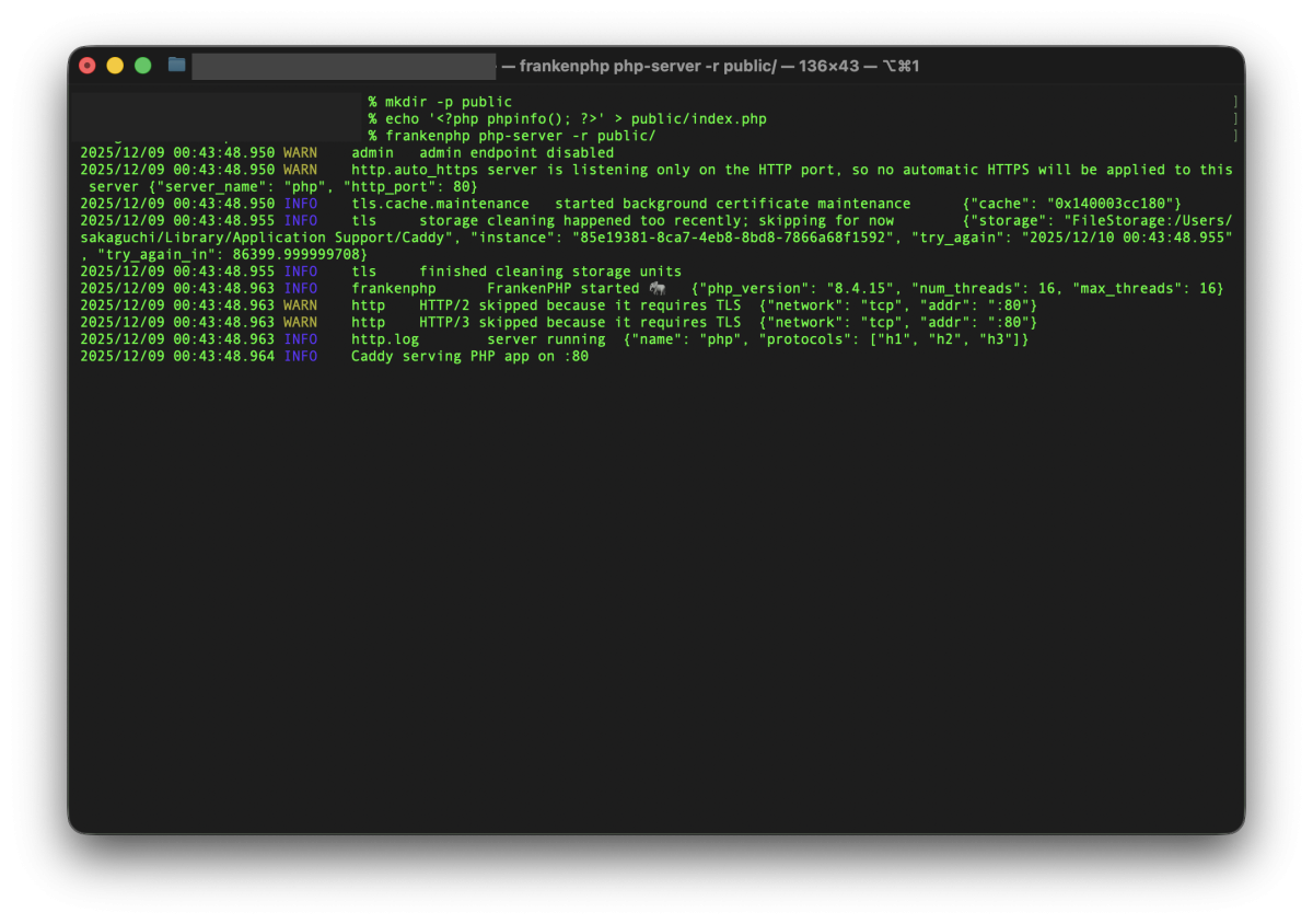 FrankenPHP は、ローカルでも非常に簡単に試せます。